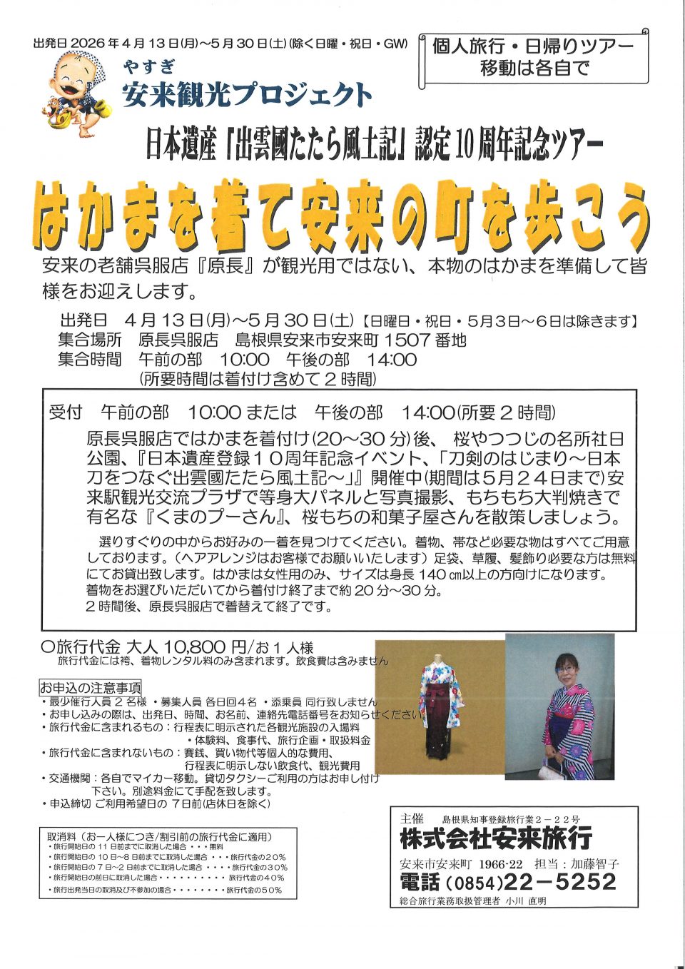 日本遺産「出雲國たたら風土記」認定10周年記念イベント 『刀剣のはじまり~日本刀をつなぐ出雲國たたら風土記~』イベントにはかまを着て参加はいかがでしょうか?会場までは徒歩10分です。